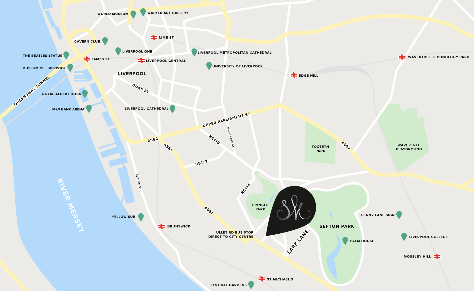 Lark Lane is within walking distance and is a popular choice for both locals and tourists and is known for being one of Liverpool’s hidden gems, nestled between Sefton Park and Aigburth Road.